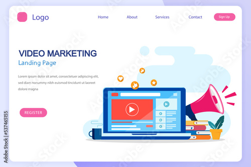 Vector web site linear art design template. Digital advertising and online marketing. Landing page concepts for website and mobile development.