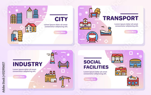 Vector web site linear art design template. Data science and machine learning. AI computer network. Landing page concepts for website and mobile development.