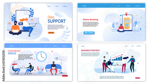 Vector web site linear art design template. Business team do data analysis using finance chart and dashboard. Landing page concepts for website and mobile development. Modern flat illustration