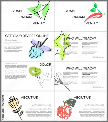 Vector web site linear art onboarding screens template. School and science subjects, anatomy, phylosophy, astronomy, botany. Menu banners for website and mobile app development.