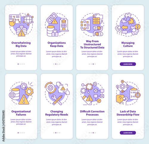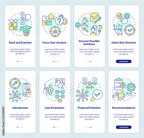 Vector web site linear art onboarding screens template. Business partnership, corporate training and teamwork. Leadership and brainstorm. Menu banners for website and mobile app development