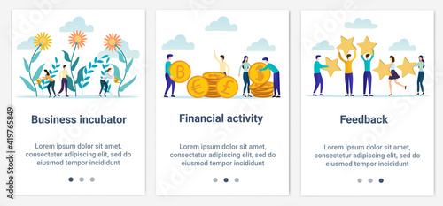 Vector web site linear art onboarding screens template. Outdoor camping, picnic and sport activities icons. Fishing, kayaking. Menu banners for website and mobile app development.