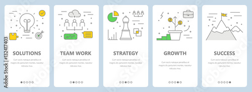 Vector web site linear art onboarding screens template. Statistic, planing and marketing icons. Menu banners for website and mobile app development. Modern design flat illustration