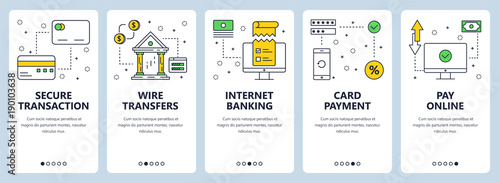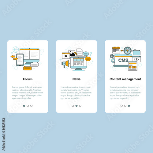 Vector web site linear art onboarding screens template. Internet web sites code and development. Menu banners for website and mobile app development. Modern design flat illustration