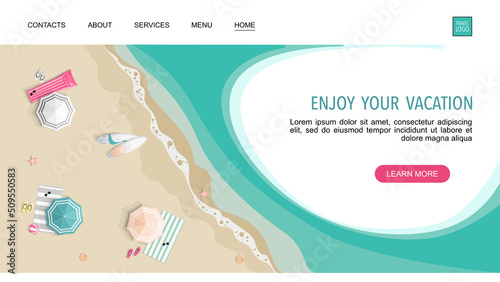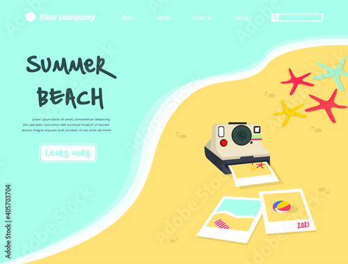 Vector web site paper art design template. Tropical beach. Summer holiday concept. Landing page illustration for website and mobile development. Paper cut origami