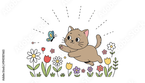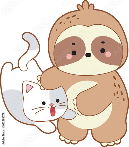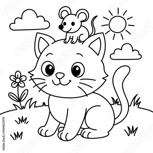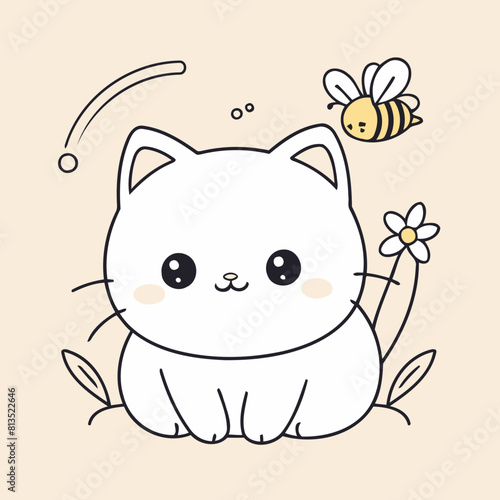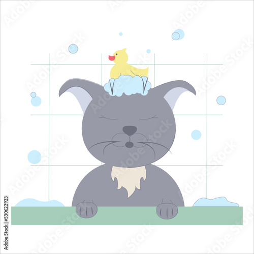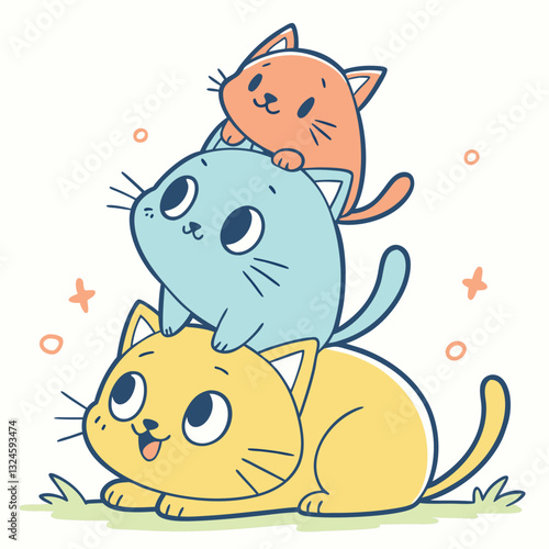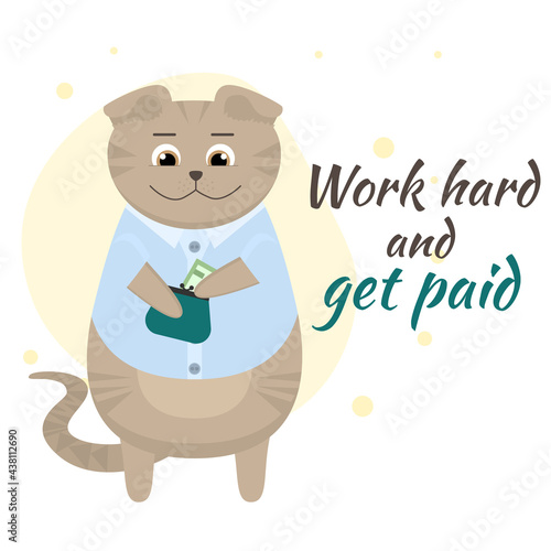 Vector well-fed cat. Cute pet animal cartoon icon. kitten character and fish skeleton heap illustration isolated on white background