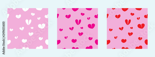 White blank and unicorn bed linen set. Three seamless patterns for kids bedding fabric samples with magic unicorns, rainbows, clouds, hearts. Vector top view illustration.