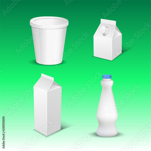 Vector white blank ice cream packaging and container set. Plastic pack templates isolated on white background.