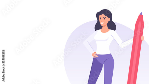 Vector young woman with sunburn problem standing under sun cartoon illustration. Girl applying protective cream to treat damaged skin