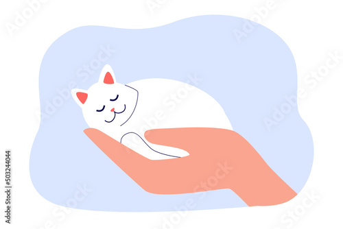 Veterinary clinic vector illustration. Wet doctor in uniform holding cute kitten and puppy in hand background. Domestic animals healthcare and treatment professional service concept