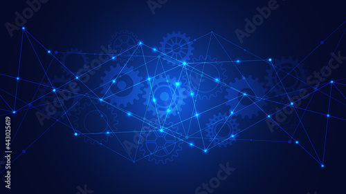 Video content concept vector polygonal art style illustration. Human hand touching play button on screen low poly wireframe mesh made of points, lines and shapes. Video streaming technology.