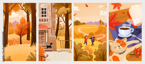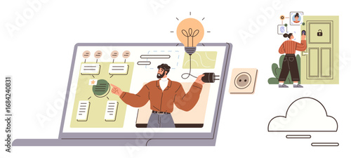 Video editing and live streaming concept vector posters set. Girl is recording video for her blog in home studio. Man working in video editor. Vlog production equipment, live online broadcast.