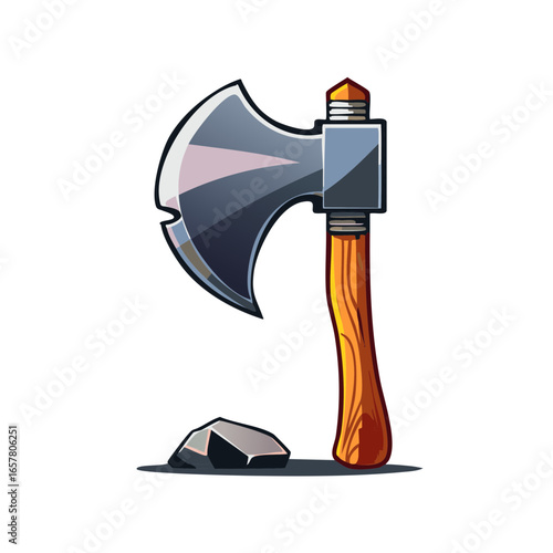 Viking battle sided axe vector. Medieval weapon illustration. Vintage steel blade sharp metal war hatchet icon isolated on white background