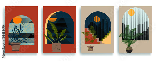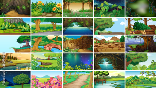 Vineyard landscape and winery field with villa farm house. Hand draw vector illustration poster. Wine wooden barrels in winery cellar. White wine bottle and vine. Man cut vine from grape tree.