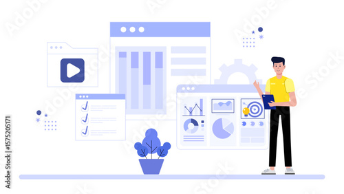 Virtual engineering vector website template, web page and landing page design for website and mobile site development. VR for architectural projects and construction.