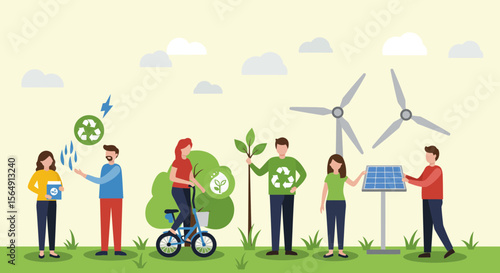 Virtual reality concert. Vector illustration of young boy in vr glasses enjoying rock music band performance at home. Flat style design.