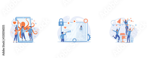 Virtual technologies, flat vector isometric illustration. Virtual assistant, smartphone navigation app, internet of things, smart home.