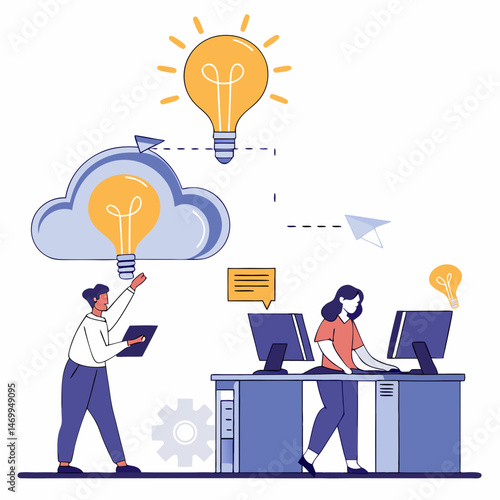 Micro male and female characters volunteers collecting food, toys, clothes into huge cardboard box in order to help poor people. Charity and donation, volunteering, supportive housing concept.
