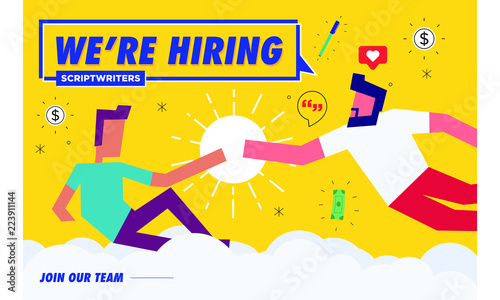 Volunteers needed, woman speaking through megaphone. Vector flat illustration for web banner, website page etc. Volunteer recruitment appeals concept.