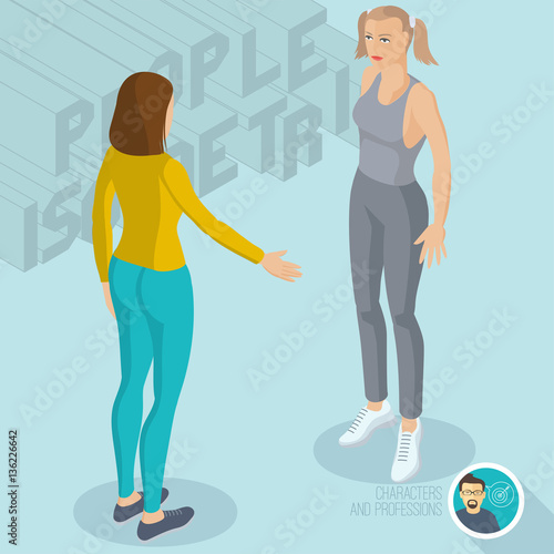 Voting and election concept vector flat illustration. Polling day. Voters male and female casting their ballots into ballot box in polling station.
