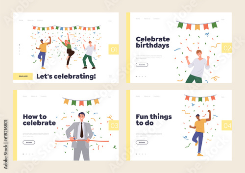Voting web banner template set. Vector flat illustration of people involved in election process. Pre-election campaign, candidate statement, agitation, picket and voting in polling station.