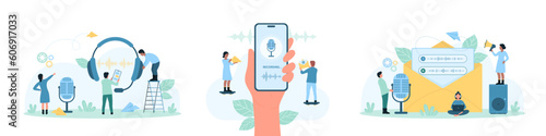 Voting, woman speaking through megaphone. Vector flat illustration for web banner, website page etc. Election campaign, polling day concept.