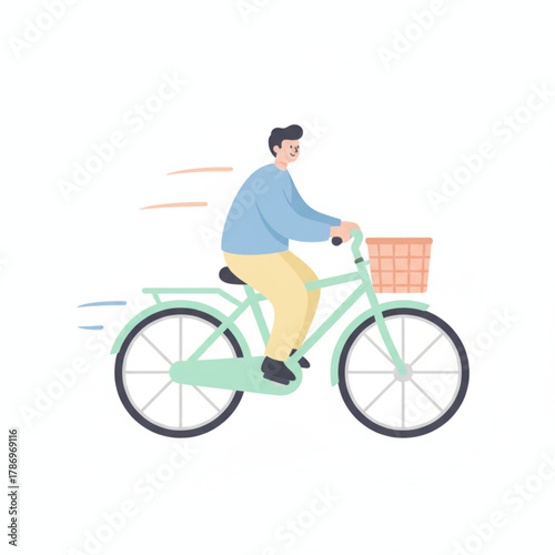 Man riding bicycle, vector flat style design illustration isolated on white background. Walk in the park, active and healthy lifestyle concept for web banner, website page etc.