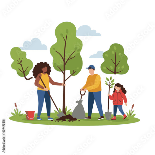 Vector illustration of father walking with his daughter in the park. Childcare and parenting concept flat style design element.