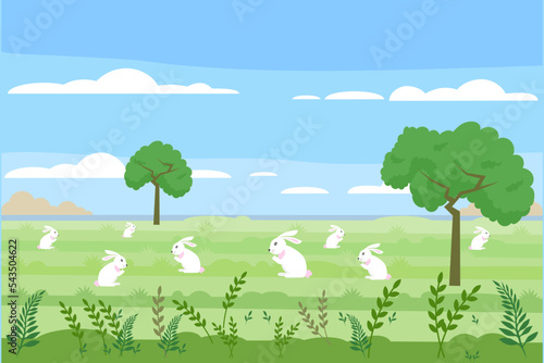 Walking with dog in the park concept vector illustration. People walking dogs, playing games with pets, training them. Flat style design.