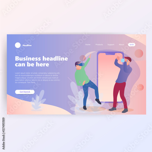 Woman hanging wallpaper, vector flat illustration isolated on white background. Wallpapering, home remodeling, renovation and repair services.