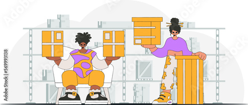 Warehouse female manager comic character. Vector concept illustration in flat style. Design elements and icons. Logistic and delivery service.