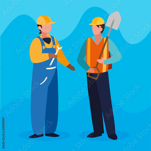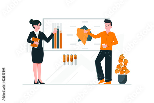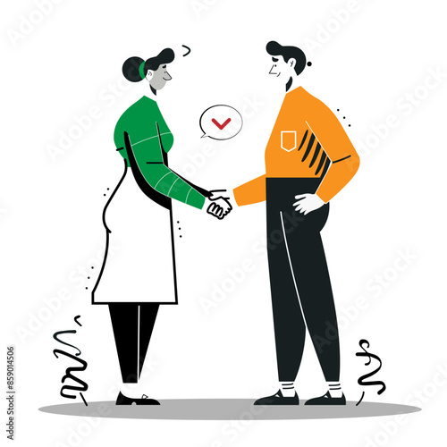 Man and woman volunteers collecting plastic bottles into garbage bag, vector flat illustration isolated on white background. Waste collection and sorting for recycling, street cleaning, volunteering.