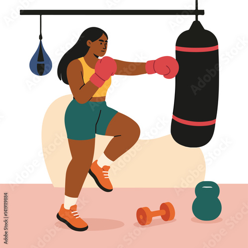 Woman volunteer putting empty cardboard box in garbage bag, vector flat illustration isolated on white background. Waste collection and sorting for recycling, street cleaning, volunteering.