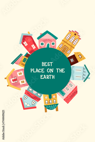 Waste pollution round frame, vector illustration. Save environment, reduce household garbage, ecology.