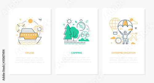 Waste sorting and recycling web site and mobile app onboarding screens. Menu banner vector template for website and application development. Organic food, recycle waste, eco plastic. Thin line art.
