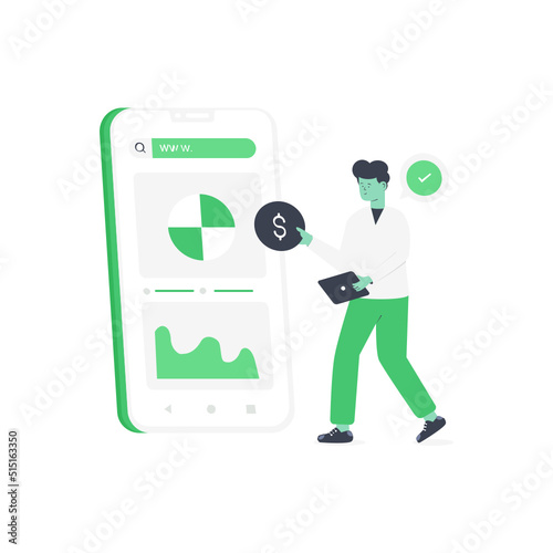 Water delivery step flat vector manual. Order from mobile phone app, processing, shipping, receiving and enjoy instruction illustration