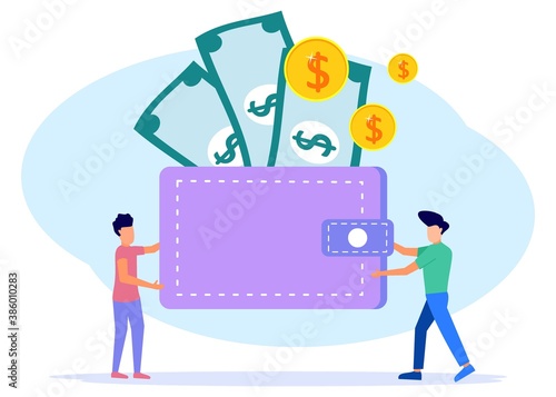 Huge pure portable water plastic bottle and micro male and female characters drinking water, delivery man. Bottled water delivery service concept for web banner, website page etc.