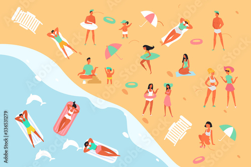 Water park vector flat isometric poster set. Children area, Aquatic attractions, Relaxation area and Swimming pools concept design elements for web banners and print.