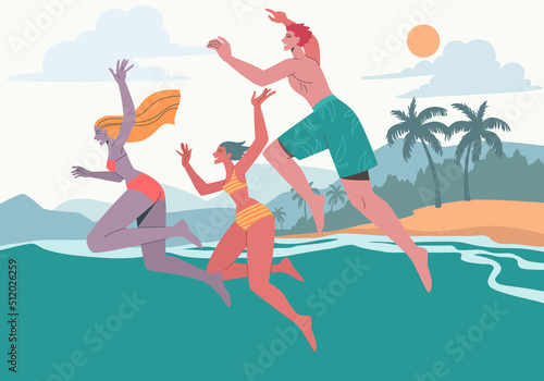 Water polo players in action concept vector illustration. Swimming and water sports. Water polo team play game in tournament. Athlete attack goalkeeper with a ball.