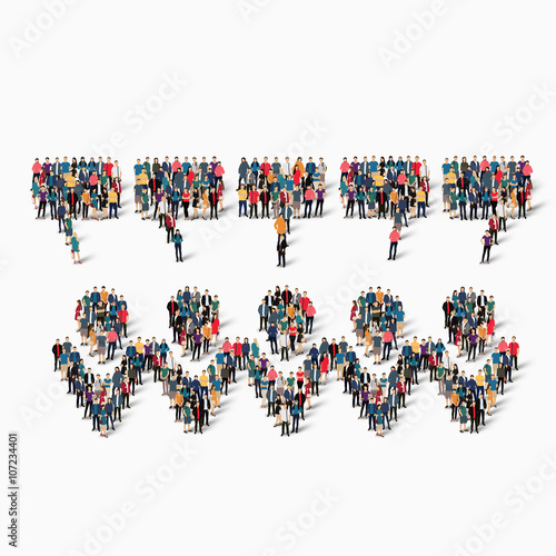 We are open sign, typography banner. Large group of people standing together in shape of letters, flat vector illustration. People crowd gathering. Business reopening after coronavirus pandemic, etc.