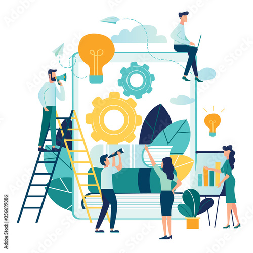 Male and female characters professional designer team creating website, vector illustration. Web designer services concept for web banner, website page etc.