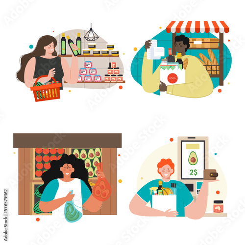 Web developer, designer cartoon character set, flat vector isolated illustration. Web chart, data visualization design.