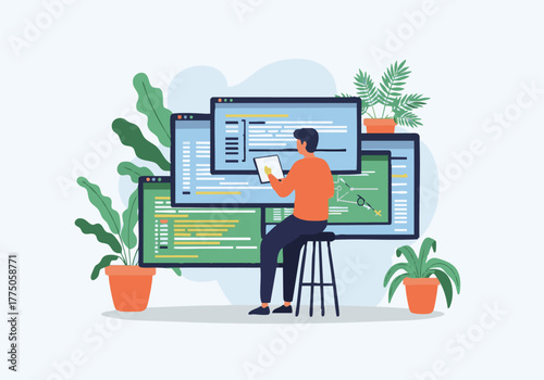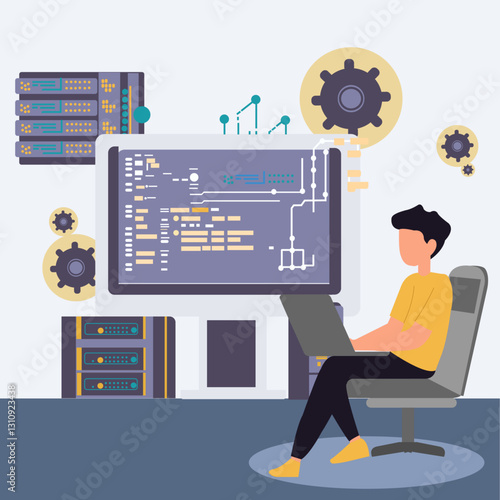 Webpage under construction. System administrators troubleshooting web site page error, flat vector illustration. Website repair services.