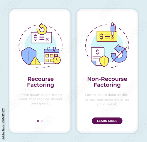 Onboarding for web site and mobile app. Menu banner vector template for website and application development. Coal, Nuclear power, Green innovation, Energy development, Purified water, Plug screens.