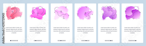 Website and mobile app onboarding screens. Menu banner vector template for web site and application development with trendy pink and violet gradient abstract dynamic fluid shapes.