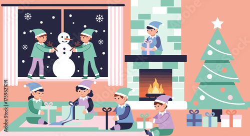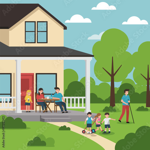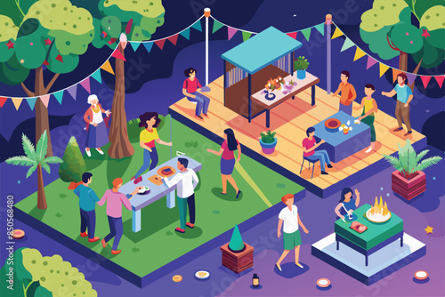 Wedding celebration vector illustration. Bride and groom, guests dancing to music, musician and singer, wedding cake flat style design elements.
