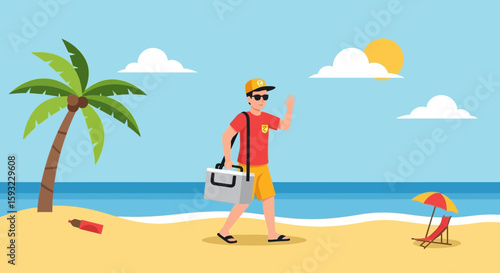Wedding professional photograph taking photo of loving just married couple on beach coastline at sea resort vector illustration. Romantic vibes, marriage ceremony at seacoast