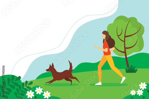 Vector illustration of woman decorating wedding table for outdoors wedding party. Flat style design element.