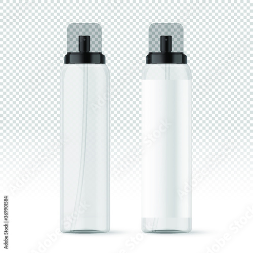 White blank cosmetic bottle mockup, paper cut craft style green mint leaves, splashes, vector illustration. Mint shampoo ads template. Beauty and hair care product.