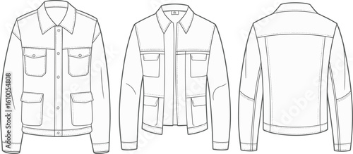 White mens shirt 4 sides mockup set. Vector realistic illustration isolated on white background.